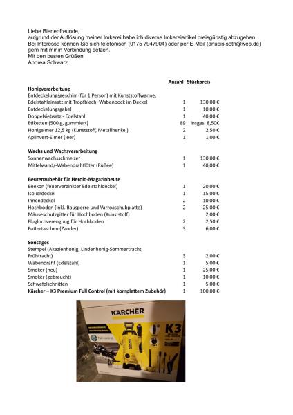 Text der Kleinanzeige (inkl. Kontaktdaten):